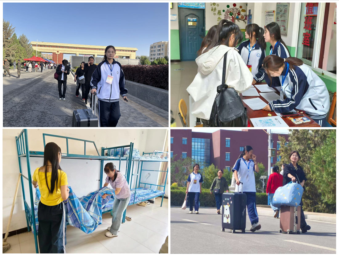 迎新期间,志愿者们身着统一白色院服、佩戴工作牌,以热情细致的服务成为校园中一道亮丽风景线。校门迎候,热情引导,有序报道,安置宿舍环环相扣,形成有序而温馨的迎新情景。