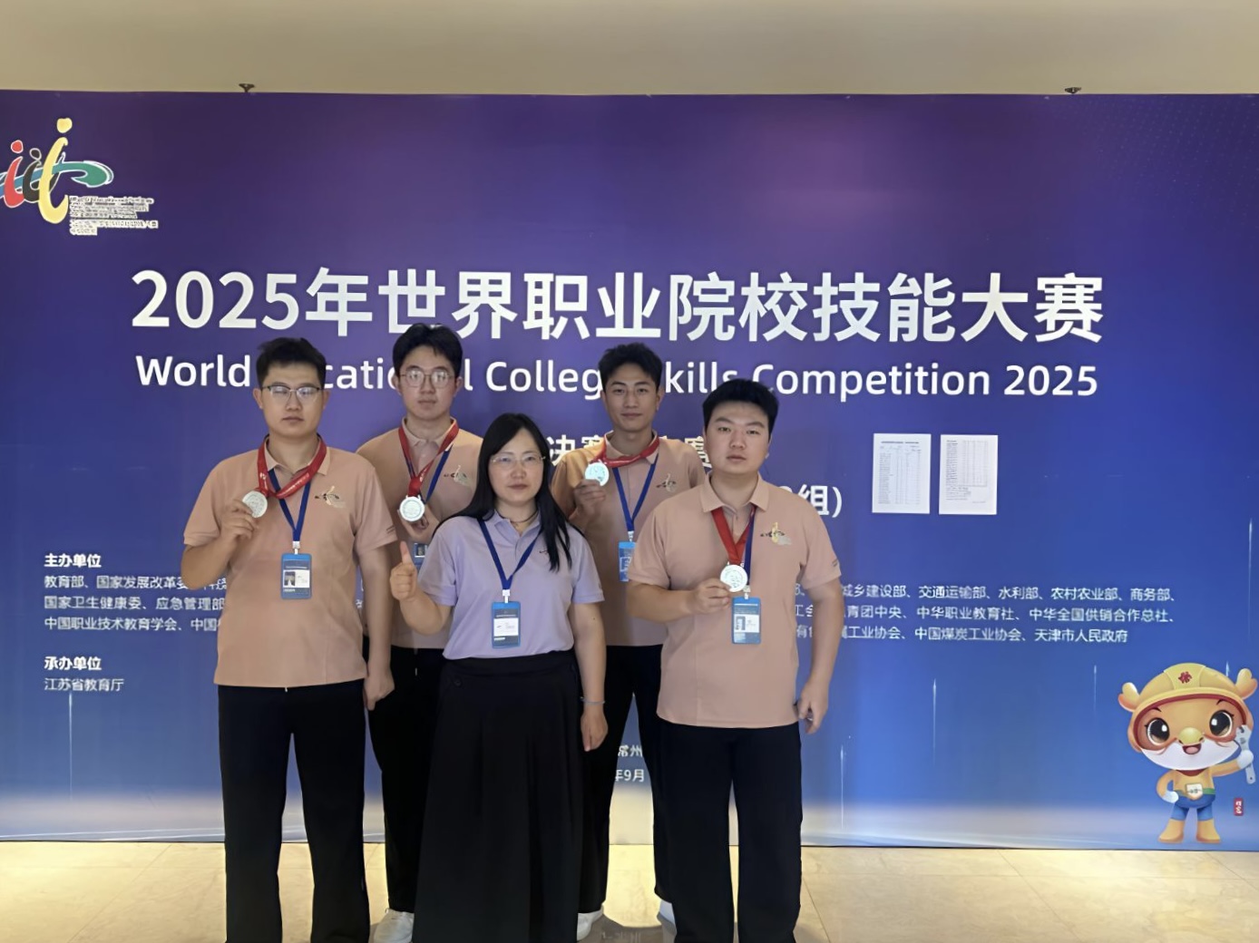 9月7日-12日,2025年世界职业院校技能大赛新一代信息技术赛道(高职3组)总决赛争夺赛在常州工程职业技术学院举行。大赛由教育部、国家发展改革委、科技部、工业和信息化部等33个部门主办。来自26个省份的44支代表队参加了角逐,我院由楚明昊、张桐菲、曹彦文、张育玮四名学生组成的代表队在刘花、林昭苏老师的指导下,荣获新一代信息技术赛道(高职3组)银奖。