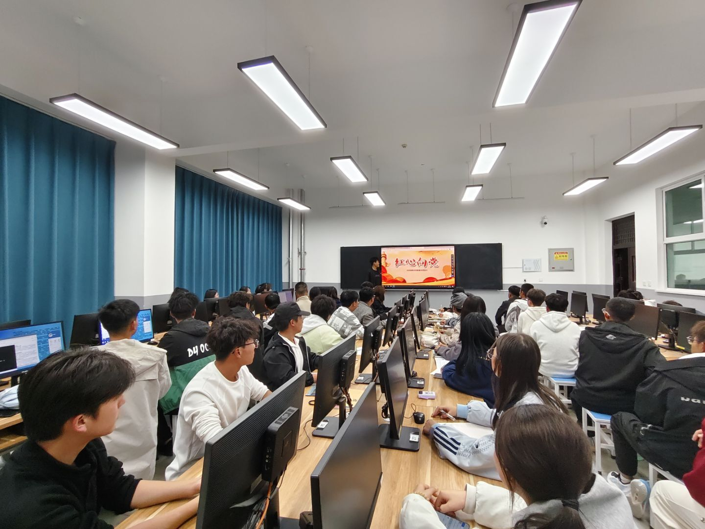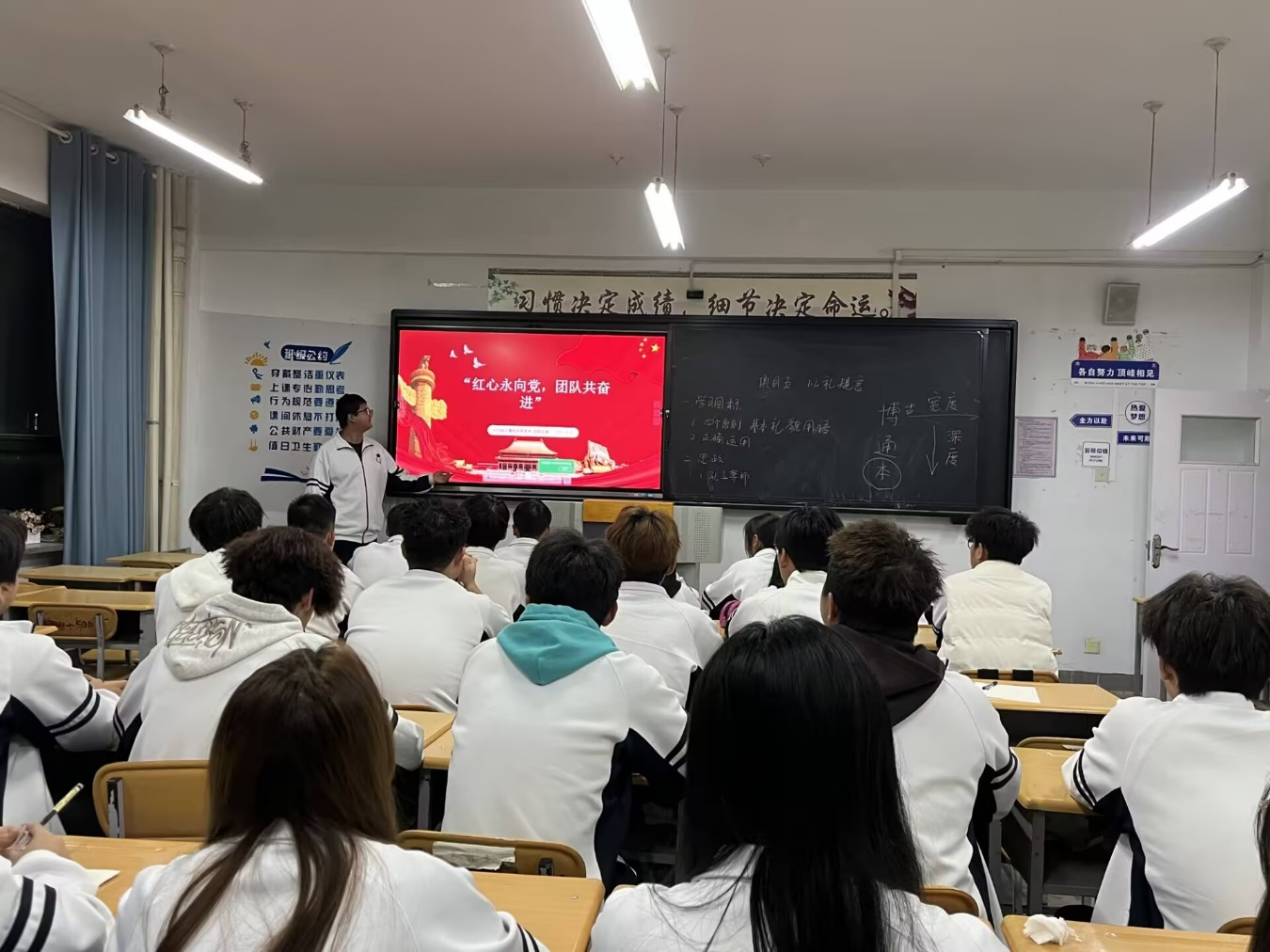 各团支部通过主题宣讲、团队互动等形式,坚定学生听党话、跟党走的政治信念,在强国建设、民族复兴的历史潮流中确立正确的人生目标,为一生的奋斗奠定基石。鼓励广大学生以赤诚之心积极向党组织靠拢。