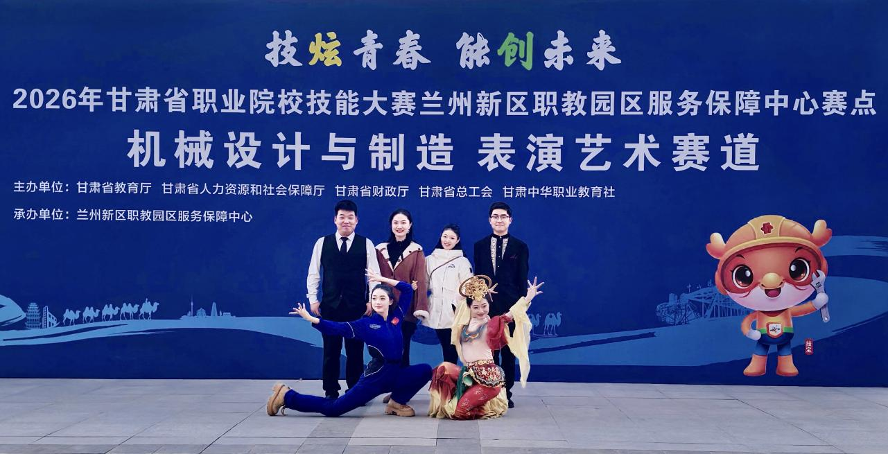 近日,2026年甘肃省职业院校技能大赛圆满落下帷幕。由郭真、马克斯文两位老师指导,2025级表演艺术班新生郑美玲、赵春春、张莉、杨金辉组成的参赛队伍,在表演艺术赛道全省33支参赛队伍的激烈角逐中脱颖而出,斩获该赛项金牌,并顺利获得世界职业院校技能大赛参赛资格。