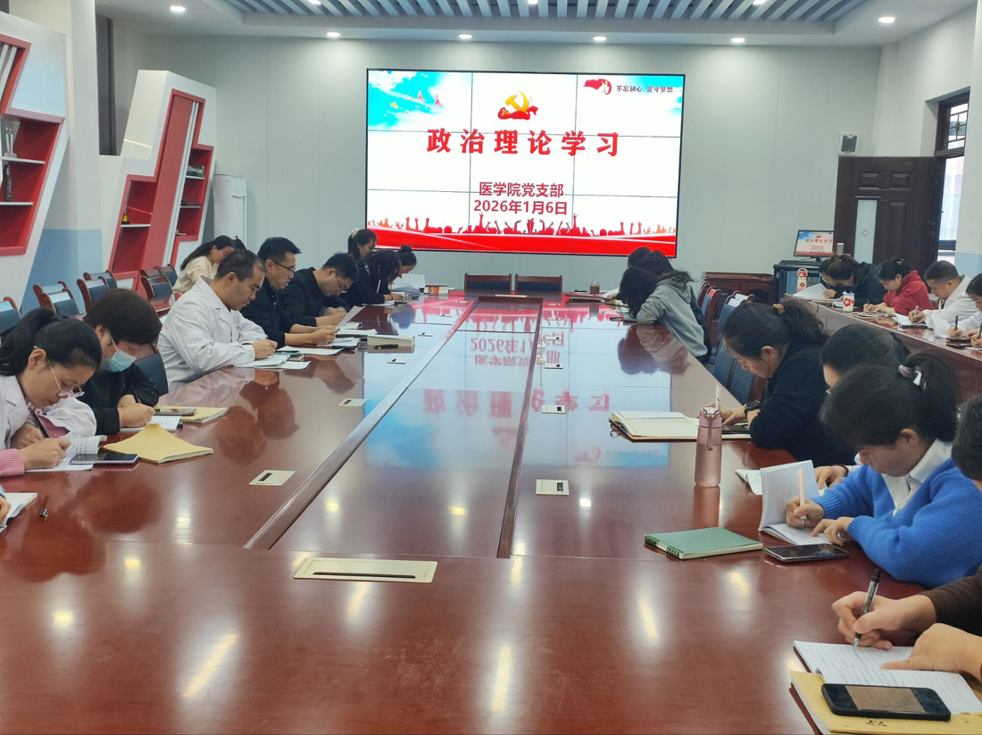 院系动态 > 正文新年伊始,为持续深入学习贯彻党的二十大及二十届四中全会精神,切实提升教职工思想政治素养与理论武装水平,统一思想、凝聚力量,医学院于2026年1月6日组织召开专题政治理论学习会议。会议由医学院党支部书记范玉敏主持,学院全体党员及教职工共同参与。