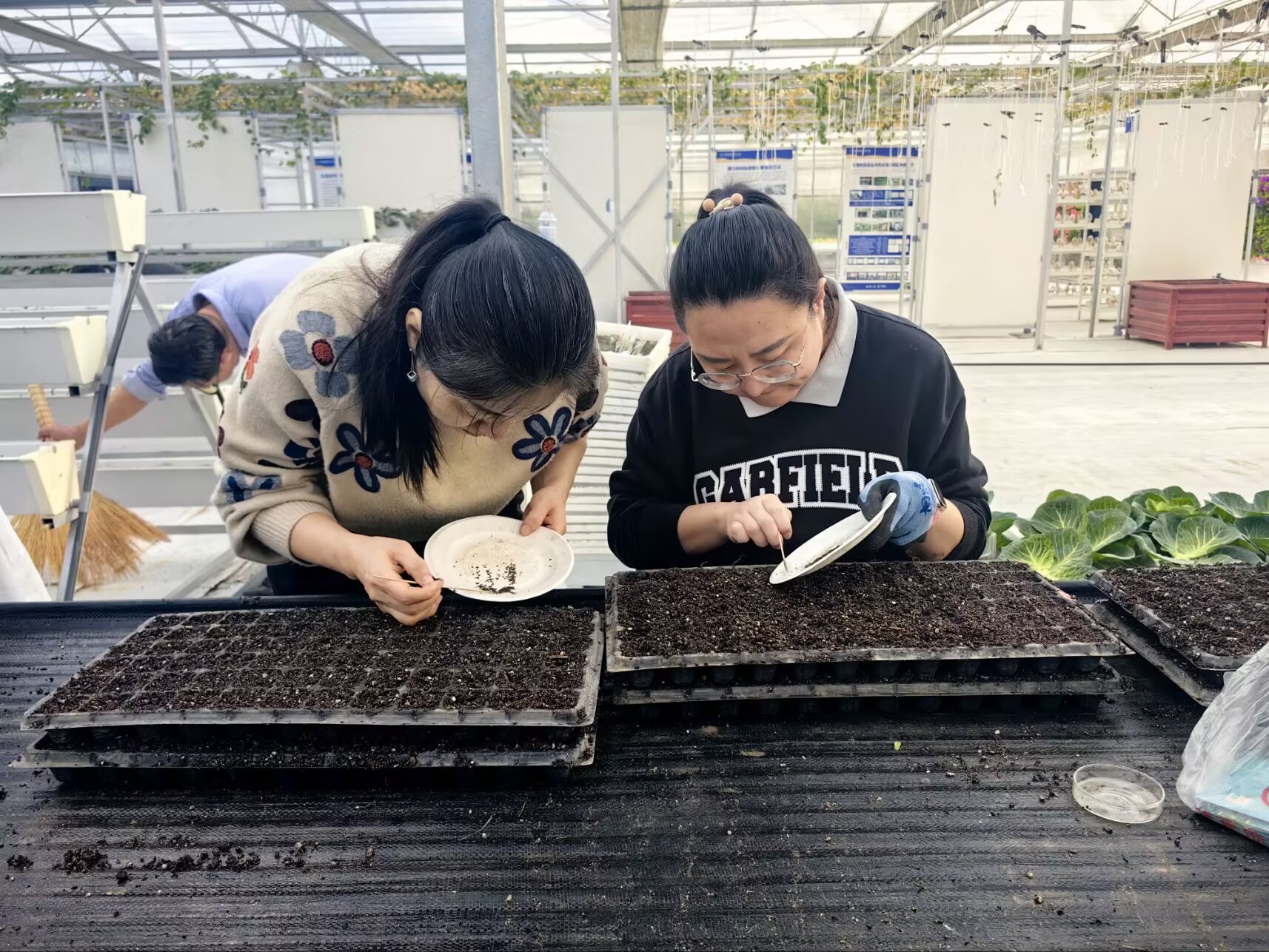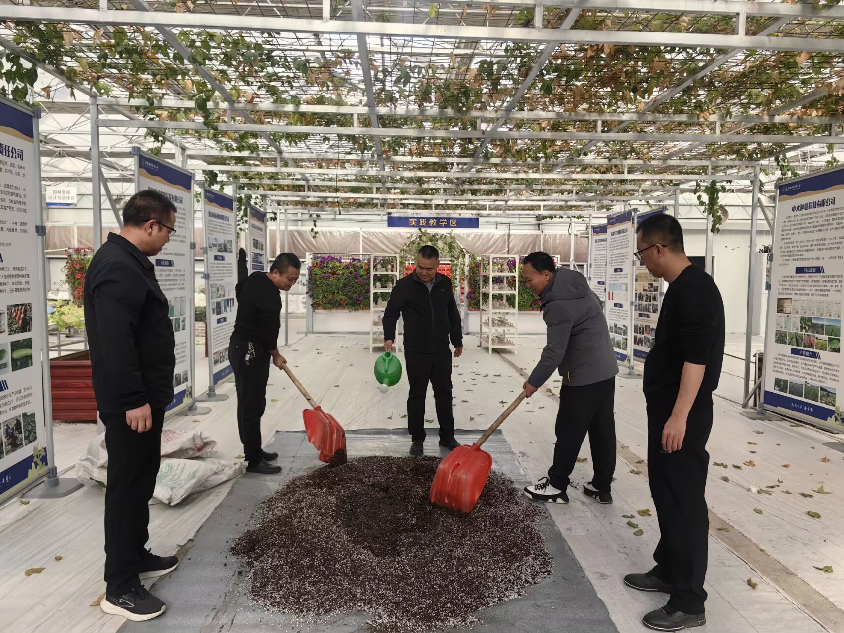 活动现场,全体人员分工明确、配合默契;在基质搅拌区域,老师们严格按照育苗技术规范,精准配比基质成分,通过人工搅拌,确保基质疏松透气、肥力均匀,为幼苗生长筑牢基础;在育苗操作环节,大家小心翼翼地将搅拌好的基质装入育苗盘,细致点播种子、覆盖薄土、浇足定根水,每一个步骤都力求规范到位,充分展现了生物工程学院教师严谨细致的工作态度和扎实过硬的专业技能。
