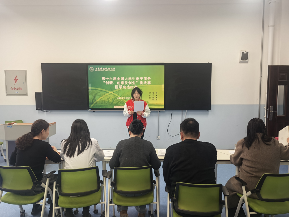 为深化创新创业教育改革,推进专业教育与创新创业教育深度融合,提升医学生跨学科创新与实践能力,3月16日下午,医学院在弘医楼举办第十六届全国大学生电子商务“创新、创意及创业”挑战赛(简称“三创赛”)院级选拔赛。经过激烈角逐,最终评选出11个优秀项目推荐进入校级赛。