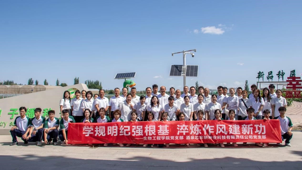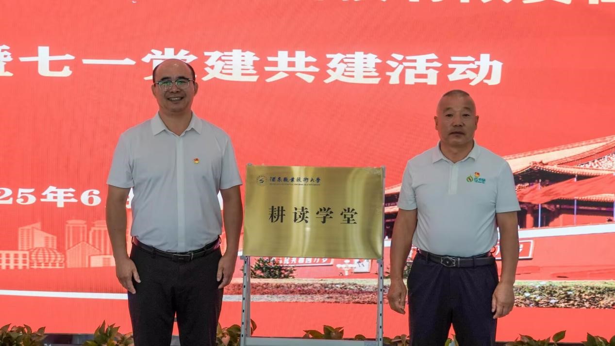 活动现场,酒泉芯农研种业科技有限责任公司副总经理马永明宣读《关于成立酒泉芯农研种业科技有限责任公司党支部的批复》。双方共同为酒泉职业技术大学“耕读学堂”揭牌。揭牌仪式后,全体党员面向鲜红党旗,高举右拳,重温入党誓词,铮铮誓言凝聚奋进力量,激励党员在种业创新与人才培育中践行初心使命。