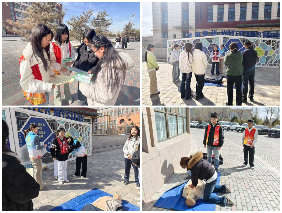 3月6日中午,医学院学雷锋系列活动——“‘救’在身边”急救技能宣讲在祁连餐厅、飞天餐厅前空地同时开展。活动聚焦心脏骤停、气道异物梗阻等突发状况,现场演示并教授心肺复苏术(CPR)和海姆立克急救法。志愿者们利用模拟人道具,分步讲解操作要领,并手把手指导师生进行实操练习。